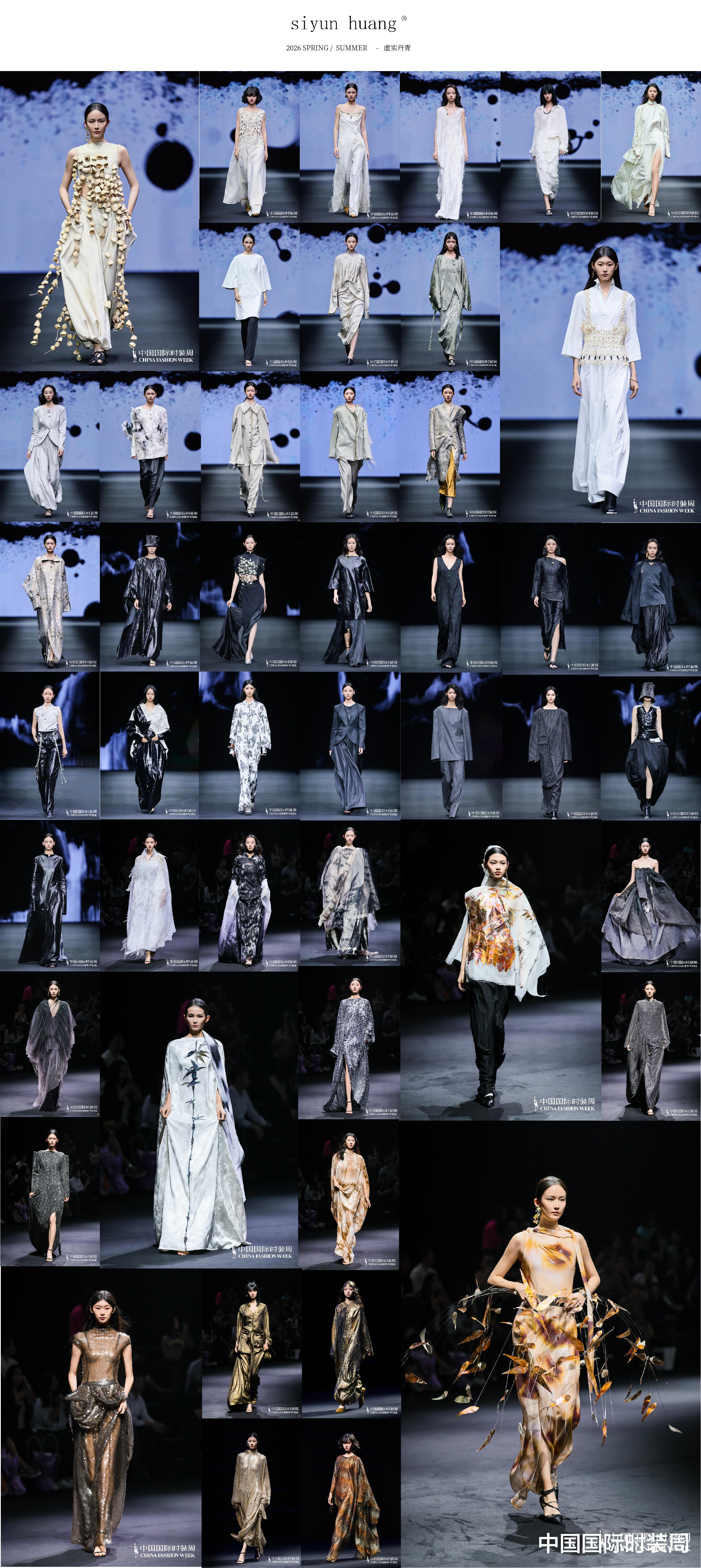 2025年,siyun huang以“科技赋能时尚艺术”、“时尚传播艺术科技”和“艺术引领时尚科技”的品牌强文化创意战略,相继重磅推出《虚实春秋》与《虚实丹青》两个高级时装系列, 深受行业赞誉与观众喜爱。它们系统化地呈现了自然与数智维度下的“虚实”交互设计理念,二者相互呼应、彼此延展,将时尚科技引向更具人文厚度的思想言说和在地化的文化语义,为中华传统文化赋予多维、活态的时尚表达。