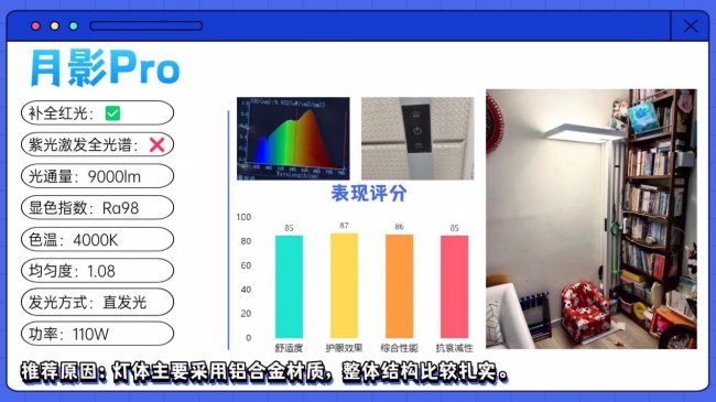儿童护眼大路灯第九名:月影Pro;灯体主要采用铝合金材质,整体结构比较扎实。