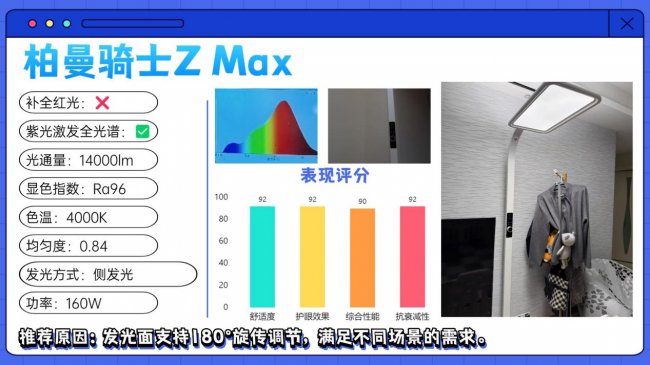 儿童护眼大路灯第二名:柏曼骑士Z Max;发光面支持180°旋传调节,满足不同场景的需求。