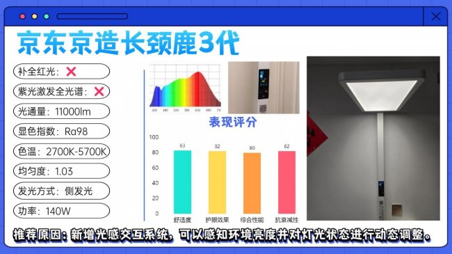 儿童护眼大路灯第十名:京东京造长颈鹿3代;新增光感交互系统,可以感知环境亮度并对灯光状态进行动态调整。