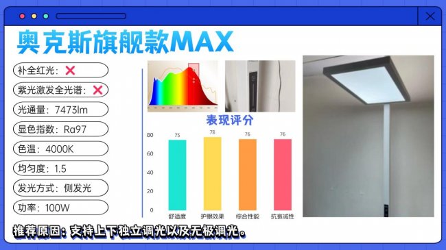推荐原因:光线经过上下发光,光通量在7395lm左右。