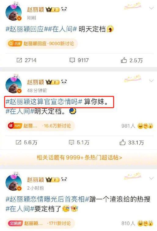 在热搜词条#赵丽颖这算官宣恋情吗 的下面回复:“算你妹。”