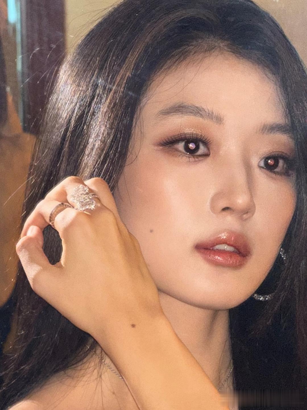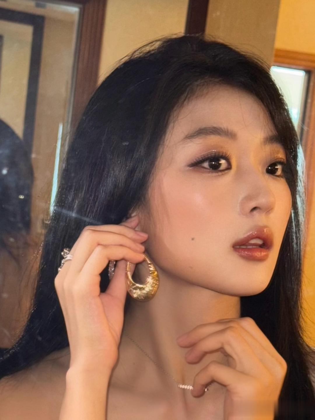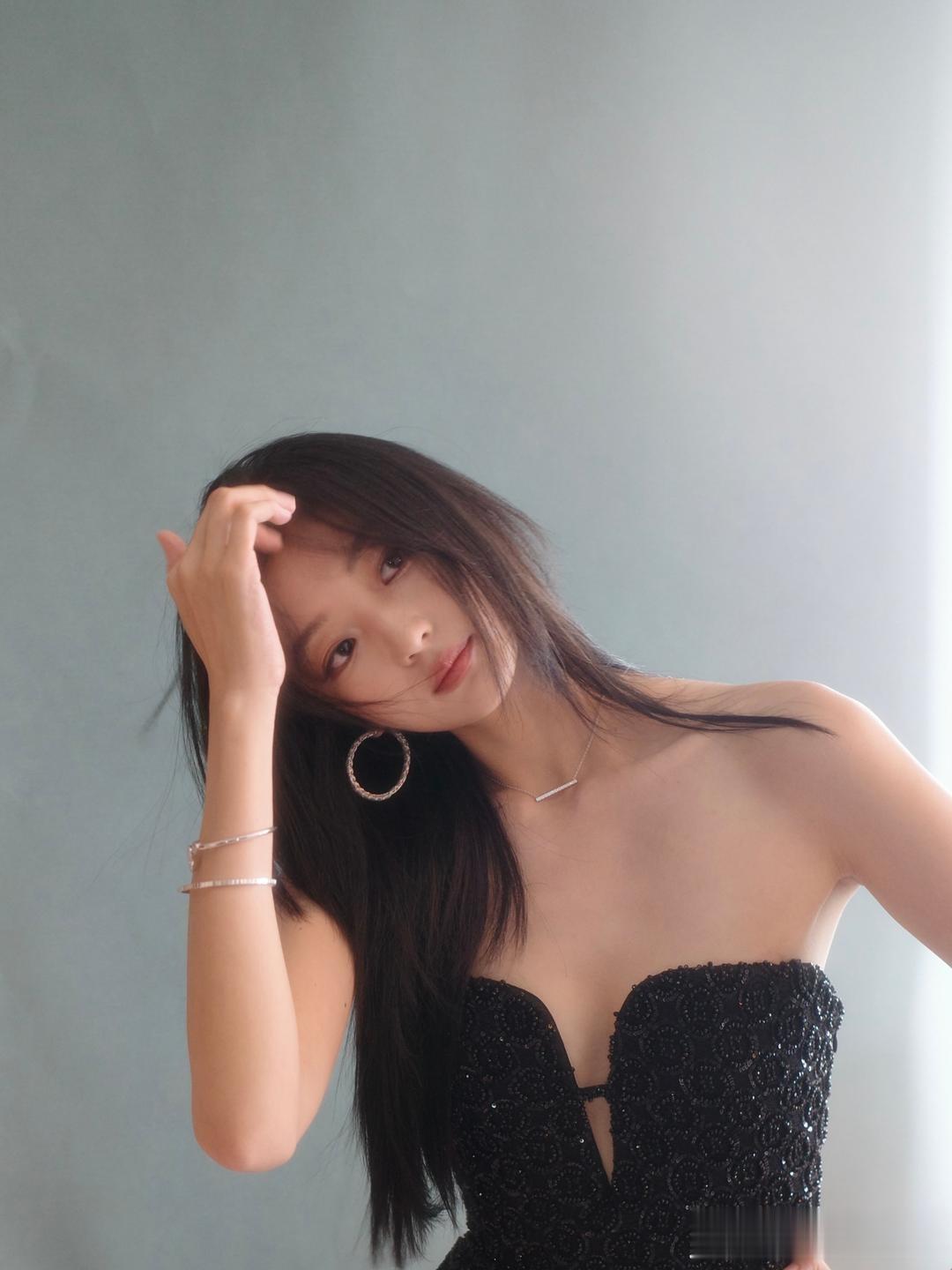 田曦薇光在肩线处折叠像一句没说完的叹息黑丝绒的发梢扫过锁骨的浅湾吊