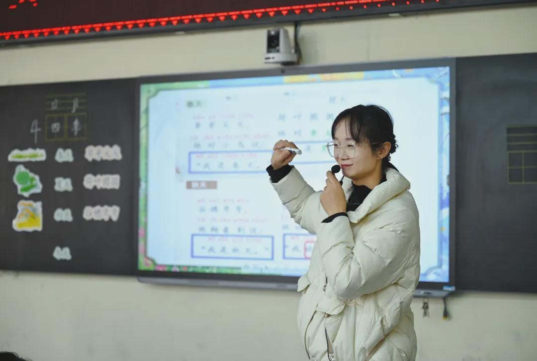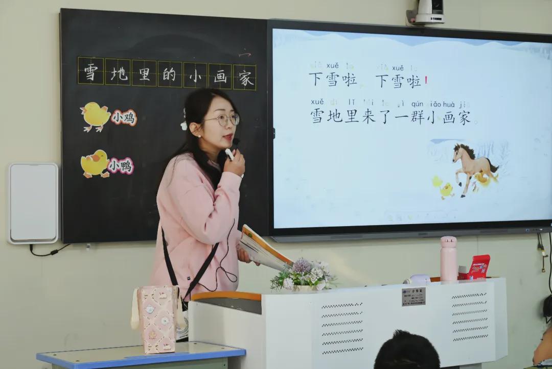 语文老师们紧扣新课标,将趣味与实效融合。拼音教学中,通过儿歌和游戏帮助学生掌握知识。课文教学则充满童趣:《秋天》引导观察生活,感受季节之美;《雪地里的小画家》用生动语言和表演,带学生走进童话世界;《四季》借助韵文和互动,领略四季变换。