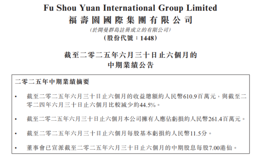 来源:福寿园中期业绩公告