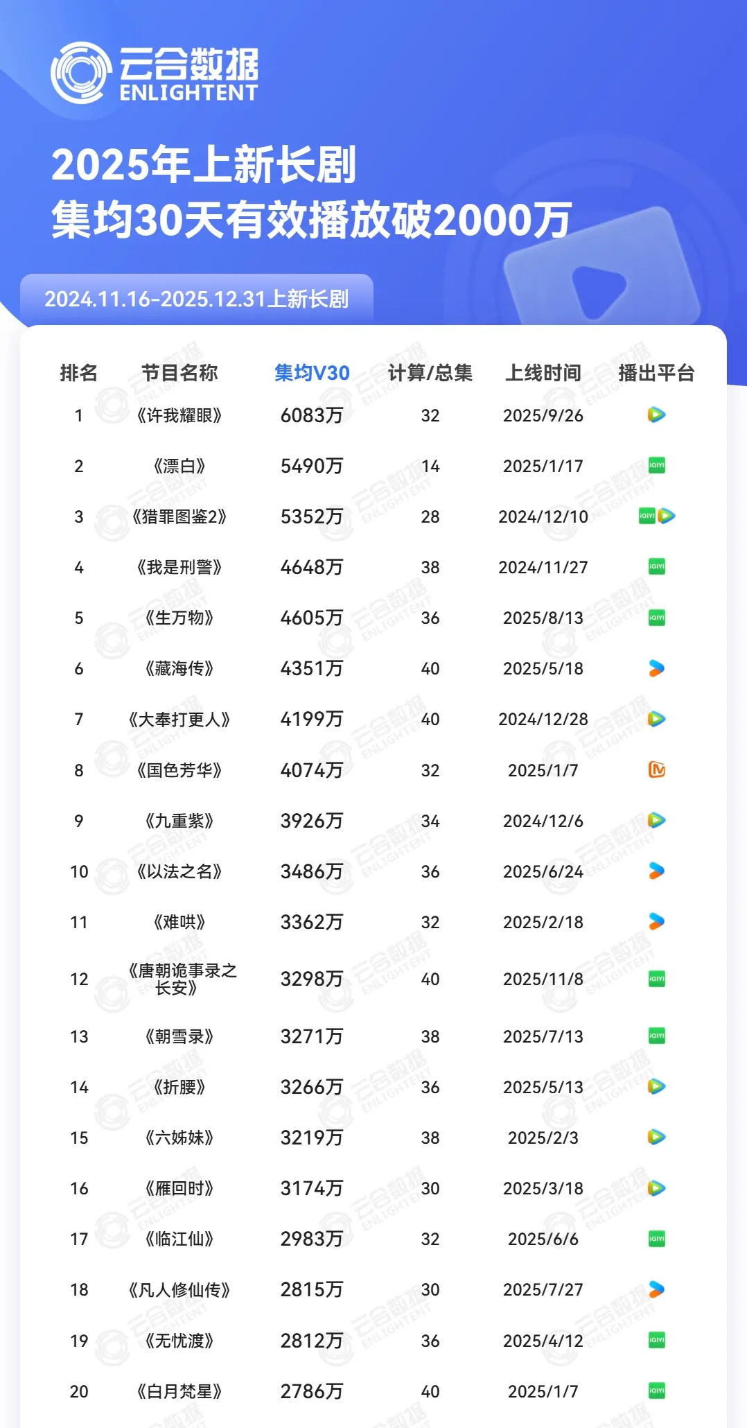 之所以在2026已鞭打快马赶到之际,还要最后复盘一遍2025年长剧的网播成绩,实在是因为两个字:模糊。