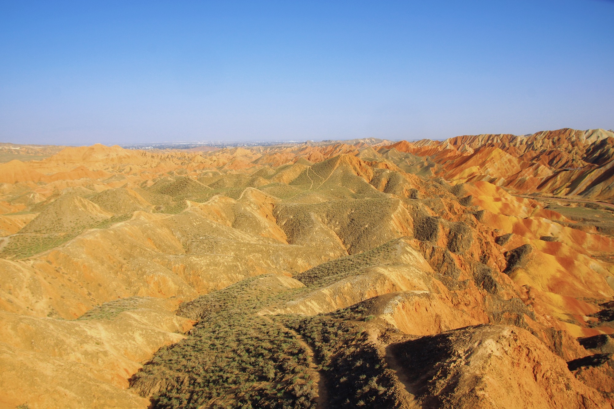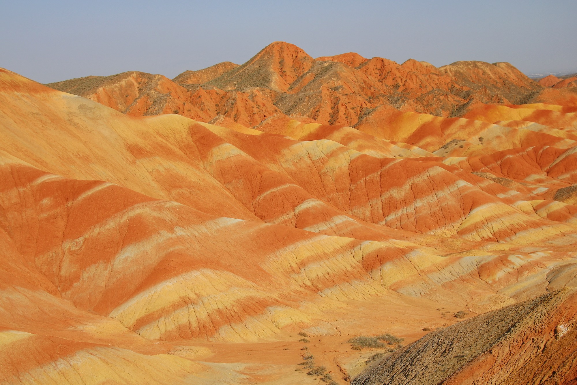 粗犷的山体和明亮的色彩形成鲜明对比,让人精神为之一振,一条橙色间隔着一条黄色,深深浅浅,大自然的审美是随意中带着高级。