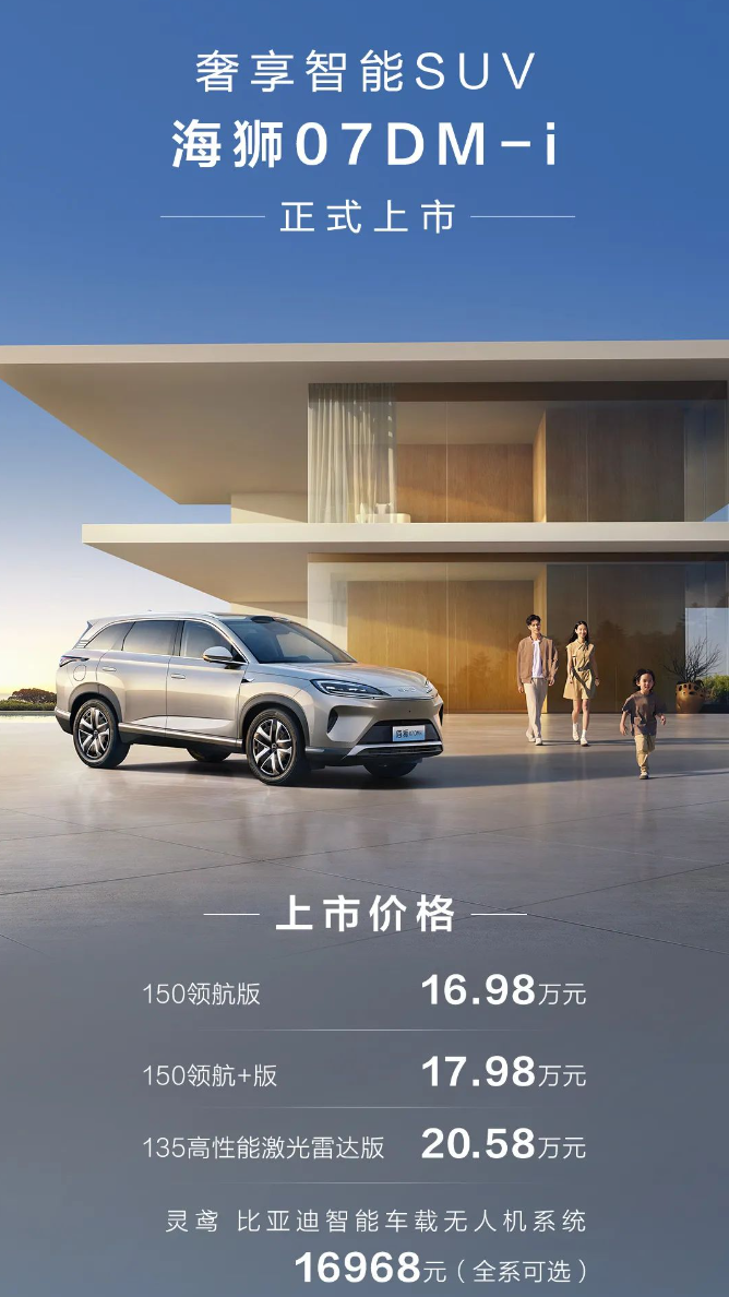 最低配仅需16.98万,诚意直接拉满了,全系可以选装比亚迪灵鸢智能车载无人机系统,搭载比亚迪自研的Dilink100车机系统,整个车在智能化方面具备十分强的竞争力,成为了居家出游的不二之选,油耗方面得益于比亚迪DM-i超级混动,这款车油耗低至4.7L,综合续航更是超过1320km,出行完全无忧,让我们一起期待这款车上市后的表现吧。