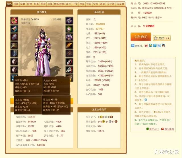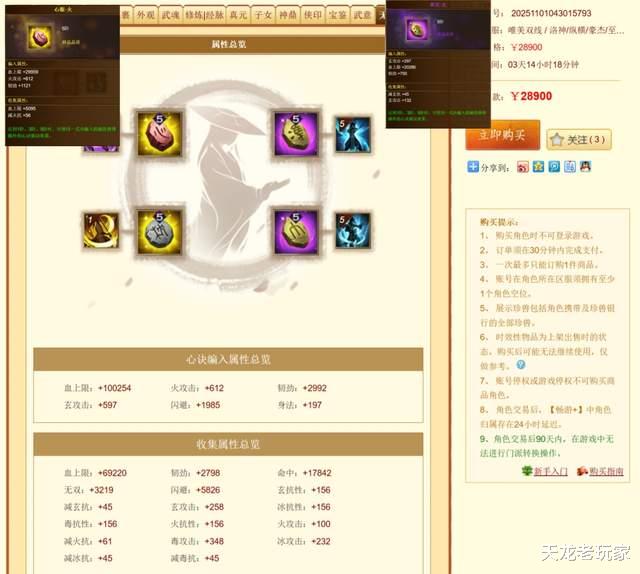 从面板就能看出这个号的与众不同:冰攻击2652,玄攻击4936,毒攻击5179?