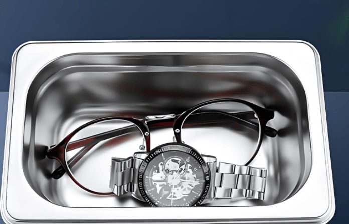 它的工作原理是利用超声波在液体中产生无数微小的气泡,通过气泡破裂时产生的冲击力来剥离物件表面的污渍,能轻松搞定眼镜鼻托缝隙、珠宝细纹等手擦难以触及的角落。