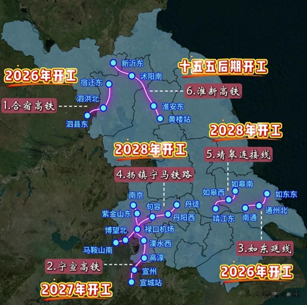 3. 宁宣高铁(局部先行段):2027年底力争开工南京城区至禄口机场段,强化南京米字高铁网与全国枢纽地位。