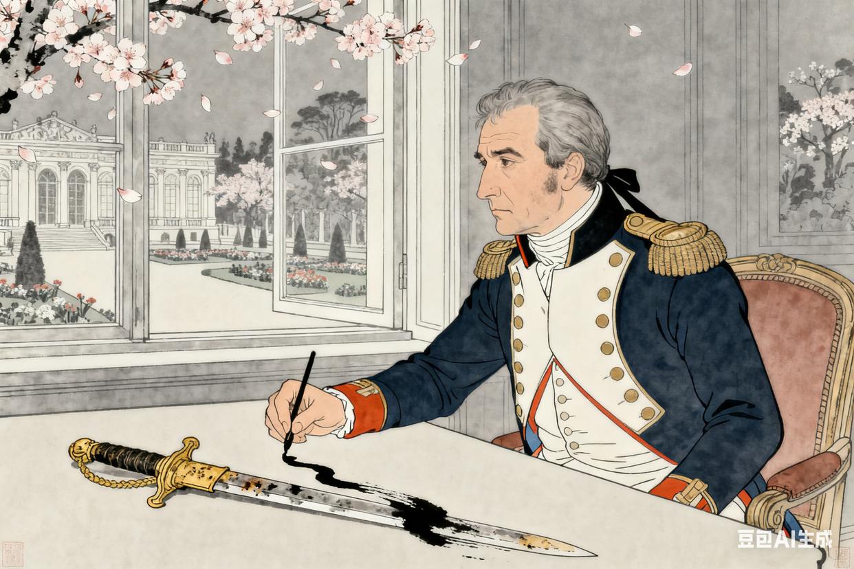 1814 年 4 月,枫丹白露宫的退位仪式上,他把佩剑放在桌上,剑鞘上的镀金已经磨损。反法同盟的代表站在对面,眼神里满是胜利者的傲慢。他看着窗外的花园,樱花正在飘落,像极了三年前奥斯特里茨战场上的雪。“我可以退位,但法国人民的尊严不能被践踏。” 他说这话时,声音很轻,却带着一丝不甘。可当他签下退位诏书时,指尖还是抖了一下,墨水在纸上拖出一道长长的痕迹,像一道未愈合的伤口。随后他被送往厄尔巴岛,上船时,有个老卫兵冲过来抱住他的腿,哭着说 “皇帝,我们还会跟着您”,他摸着老卫兵的头,却没敢回头 —— 他怕一回头,就会看见更多双充满期待的眼睛,而他知道,自己给不了他们想要的未来。