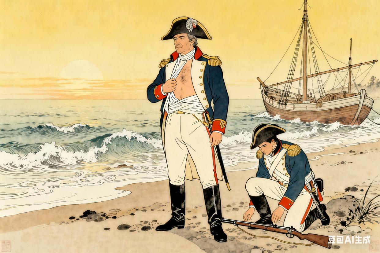 1815 年 6 月 18 日,滑铁卢的暴雨里,法军的防线一点点崩溃。拿破仑站在高地上,看着自己的军队像潮水般退去,雨水混着汗水流进他的眼睛,模糊了视线。他想下令反击,可嘴唇动了动,却发不出任何声音。副官跑来告诉他,格鲁希元帅的援军还没来,他只是苦笑 —— 命运终究还是没有站在他这边。当夜幕降临时,战场上一片死寂,只有受伤士兵的呻吟声在雨夜里回荡。他骑着马离开战场,回头看了一眼那片被鲜血染红的土地,心里突然涌起一股从未有过的无力感 —— 他曾经以为自己能改变世界,可到头来,却只是在欧洲的土地上留下了无数伤痕。