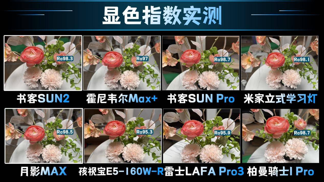 从实测数据来看,其中书客SUN Pro、书客SUN2、月影MAX、家立式学习灯、柏曼骑士I Pro这几款护眼大路灯的显色指数都达到了Ra98以上,实际还原色彩真实、视觉舒适,适用于日常读写场景,另外值得一提的是,书客的两款护眼大路灯还符合TM-30光标准,是一款严苛10倍的标准把控的护眼大路灯。