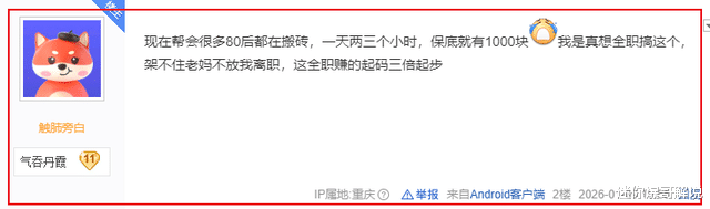 哥们表示现在很多中年人都在逆水寒里搬砖,如果只是在游戏里兼职一天3个小时左右,这10天时间大概能赚到1000块保底收入,虽然不算多,但有零花钱总是好的。