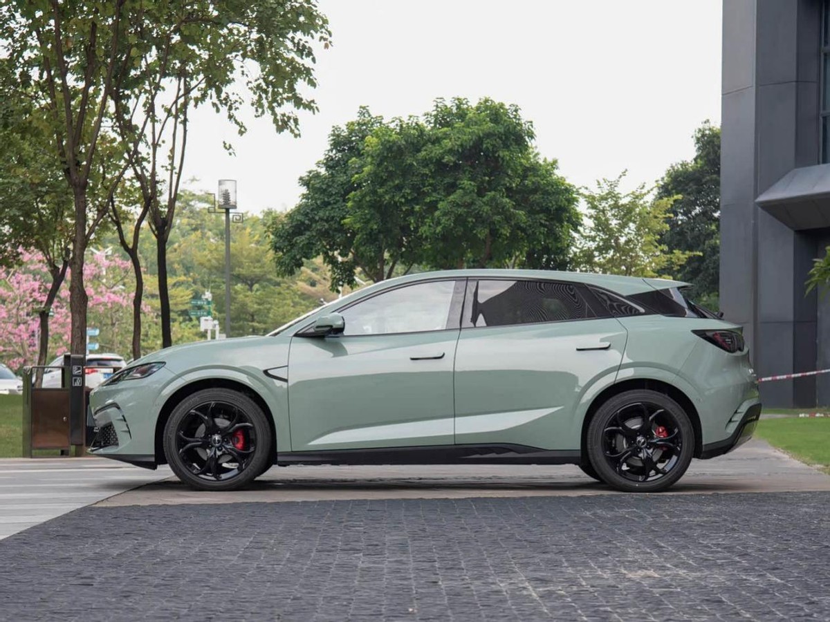 对于一款轿跑车而言,大家伙儿最关注的还是颜值,首先是海豹06 GT,它的整体造型还是比较的个性前卫,尤其是侧面造型,车身低趴修长,前低后高的姿态搭配隐藏式门把手、19英寸多幅式铝合金轮毂、无框式车门、全车高亮黑钢琴烤漆装饰件、玻璃材质高亮黑B柱饰板,营造出强烈的运动气息,非常的符合年轻人的喜欢。