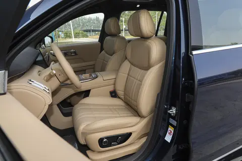 车子还可以选配压缩机大冰箱,温度调节范围在 - 6℃ - 50℃,能装下 8 瓶 550ml 的矿泉水,夏天想喝冰镇饮料,冬天想温杯牛奶,都特别方便,考虑得特别周到。后排配置也很丰富,21.4 英寸镁铝合金材质的后排吸顶屏,边框特别窄,只有 6mm,还支持 0° - 75° 的无级调节,后排乘客可以自己调节开关、音量和频道,完全不会打扰到主驾驶,特别人性化。车内还有 18 处覆盖了 256 色氛围灯,再搭配上 20 扬声器 + 7.3.4 全景声系统,不管是家庭出行还是商务接待,都能营造出特别好的氛围,档次一下子就上来了。