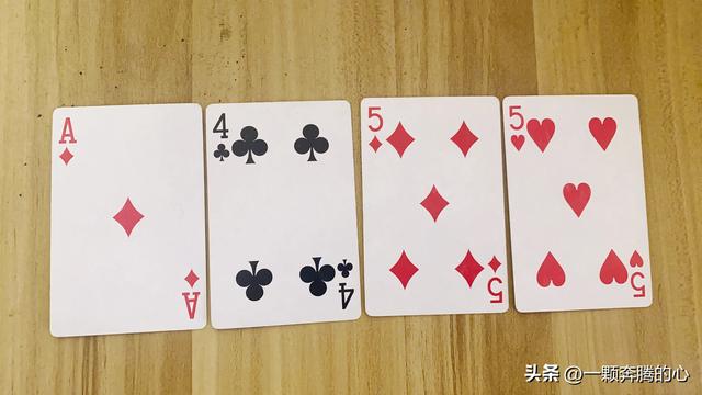 儿子手脚麻利拿出1、4、5、5这四张牌。