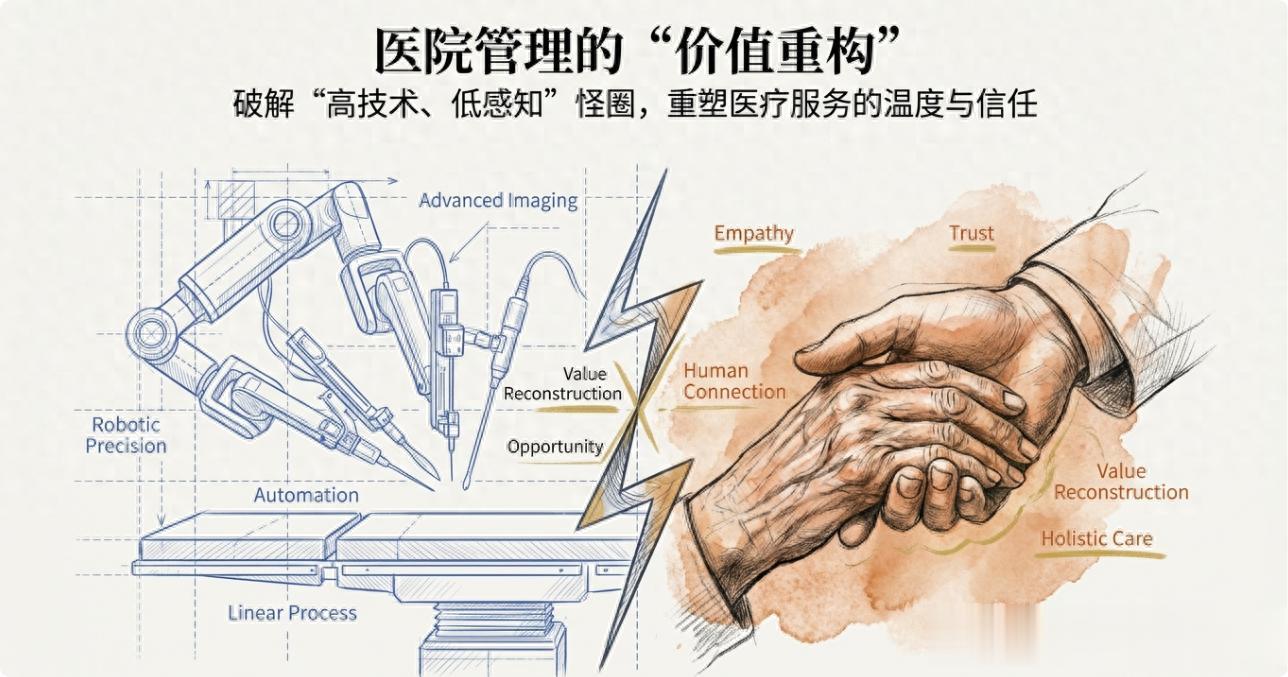 一、 院长们的困惑:技术在飞跃,温度在“降维”做医院管理久了,院长们常会感到一种深深的无力感: 明明我们的微创手术已经做到极致,明明我们的设备已经是国际一流,但患者满意度并没有同步线性增长。相反,投诉信箱里塞满了对医护人员态度的抱怨。