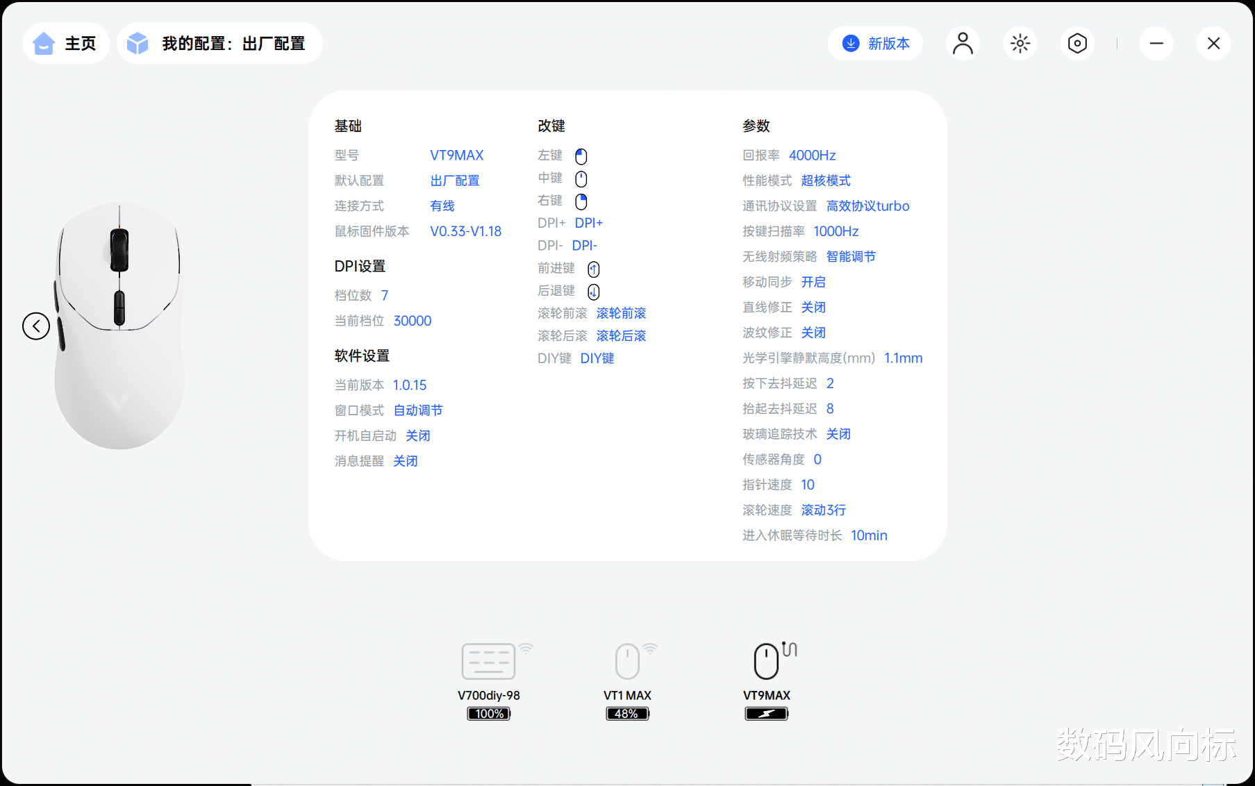 对于喜欢在PC上玩游戏的朋友来说,键盘和鼠标的延迟表现非常重要,想想看,关键时刻的走位、瞄准,哪怕一丝延迟或是电量告急的提示跳出来,都可能直接“送”掉一局好戏,此外对于无线连接的设备,续航能力也非常关键,目前我用的雷柏V700DIY-98长续航版机械键盘和VT9 MAX无线鼠标,在这两方面的表现都非常出色。