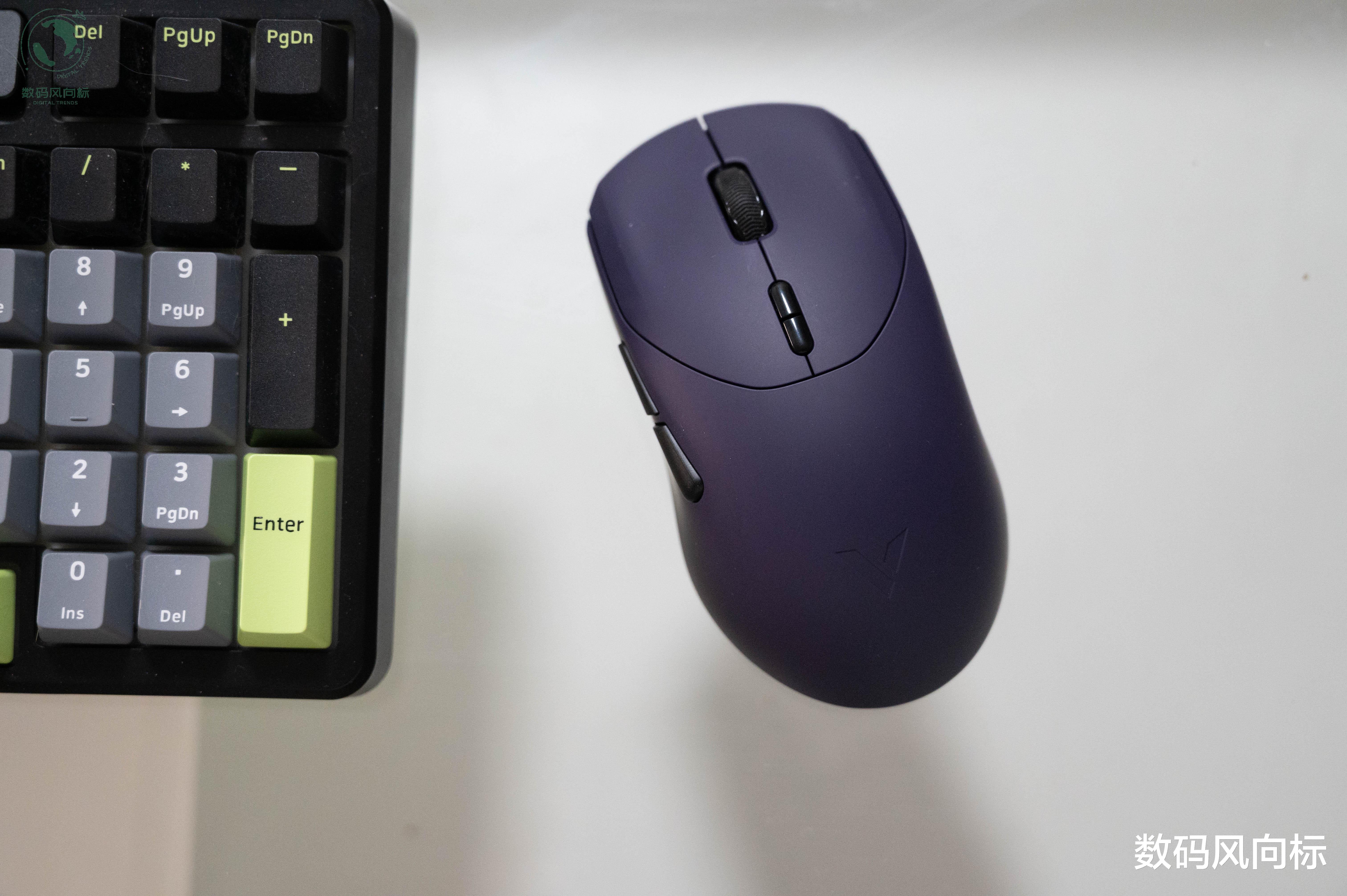 VT9MAX鼠标的“电驭紫”配色同样让人眼前一亮,表面亲肤防滑涂层即使手汗较多时也能保持稳固握持。约53克的重量轻得让人惊喜,拿在手里几乎感觉不到负担。
