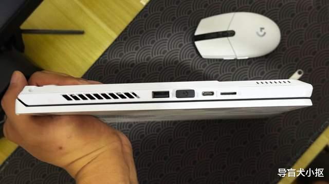 外观上,幻14完美沿袭了rog系列产品的特征,突出了游戏本的亮点。机身a面虽然也是完整的结构件,但做了特别处理,即分成了对角线两面布局。靠近转轴的这一面是磨砂白配色,并且包括机身底壳、c面等都是这个色系,全局搭配,磨砂质感,观感非常好。在转轴这一面,同时加入了产品的logo,有一面亮面金属底壳镶嵌装饰,辨识度高。而在靠近掌托的那一面,则布满了细小的圆形孔阵,密密麻麻的显示,像散热孔,实际却是机器的led灯带。灯带支持多色、多区域显示,有变形和光闪频率的设置,非常炫酷,打游戏时更加带感。