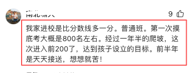 接受“爬坡期”的狼狈,别只盯着排名。就像评论区那个“进校压线”的孩子,家长天天接送15公里,苦吗?苦!但孩子从800名爬到200名,靠的不是骂,是“我想达到自己目标”的那口气。别盯着那丢了的300名,去看看错题本,只要这次比上次少错一道,就是胜利。高中的排名是虚的,知识掌握才是实的。