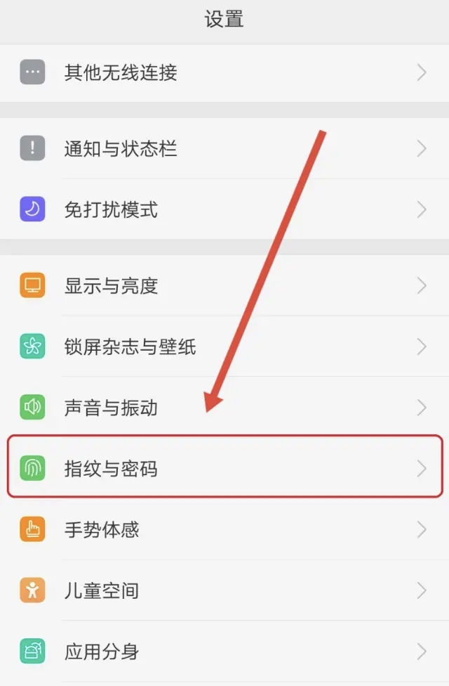 首先进入到手机设置页面,点击:指纹与密码。