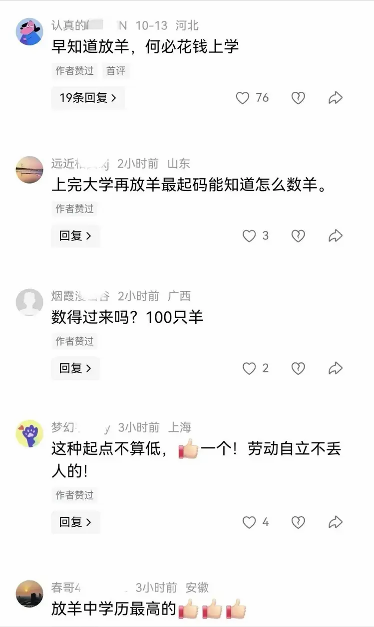 网友:早知道放羊,何必花钱上学对于大多数人来说,读书是为了走出去,女孩读完书后却回到了起点,这是在浪费教育资源吗?看看网友是怎么说的。