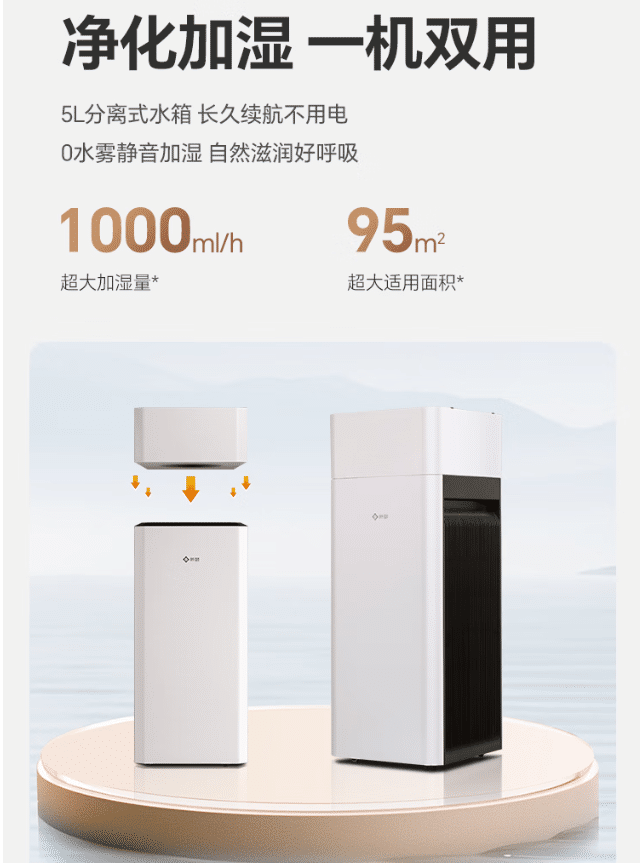 一进空调房就口干舌燥、皮肤紧绷,关窗开空调又担心灰尘、细菌堆积 —— 这是很多人夏天 / 冬天的 “空调房困境”。更麻烦的是,想同时解决 “净化” 和 “加湿”,得摆两台机器,既占地方又要插两个插头。