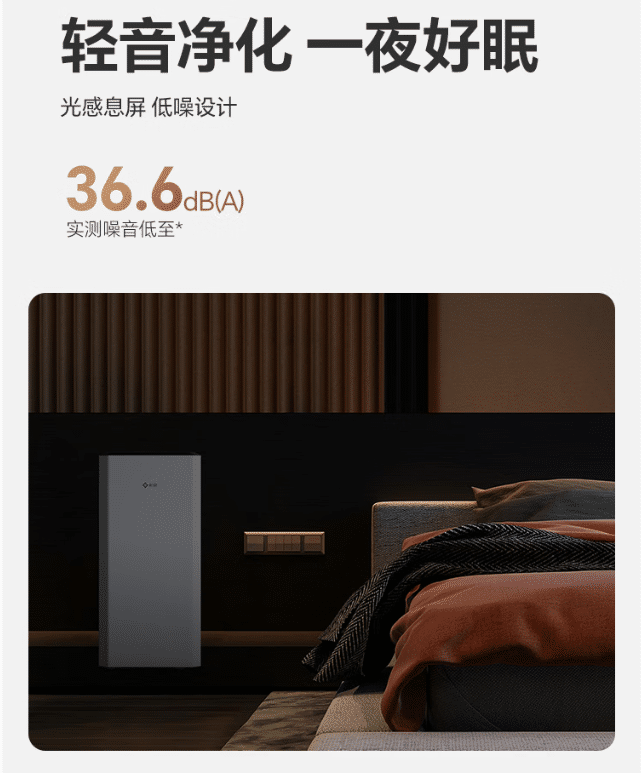 我做了夜间实测:将小白 3.0 放在卧室床头柜(距离枕头 1.5 米),空调开 26℃低风速,开启小白 3.0 “睡眠模式”(同时运行净化 + 加湿),用分贝仪检测,综合噪音(空调 + 净化器)为 38dB,其中小白 3.0 的噪音仅 36.6dB,几乎被空调风声覆盖,凑近机身也只能听到极细微的气流声。连续一周夜间使用,无论是浅眠的老人,还是容易被吵醒的小孩,都没有出现因机器噪音翻身、惊醒的情况。