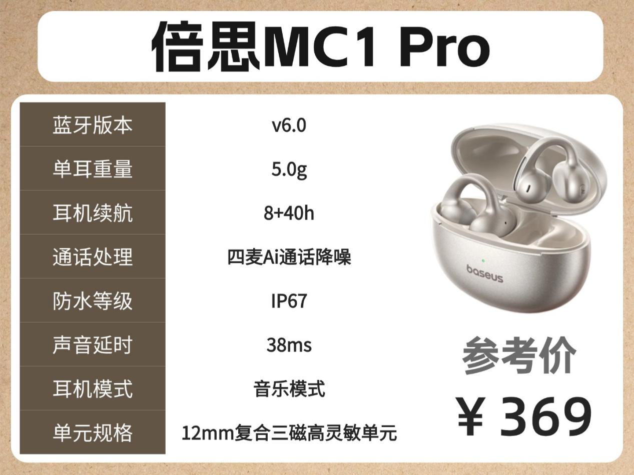 预算300-500元:倍思MC1 Pro(云朵缓压气囊Pro、立体声增强技术)、塞那S7S(8+48小时续航、空气耳骨结构)