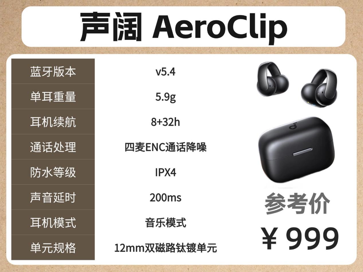 预算500-1000元:漫步者 Lolli Clip(13mm巨能钛动圈单元+六麦ENC通话降噪)、声阔 AeroClip(SoftFit稳固锁定系统、动态低音补偿技术)
