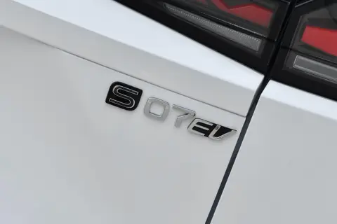 车身侧面,深蓝S07的侧面设计挺带感的,溜背造型配上隐藏式门把手,再加上熏黑的侧裙和全新设计的轮毂,运动范儿十足,而且风阻系数低至0.258Cd。