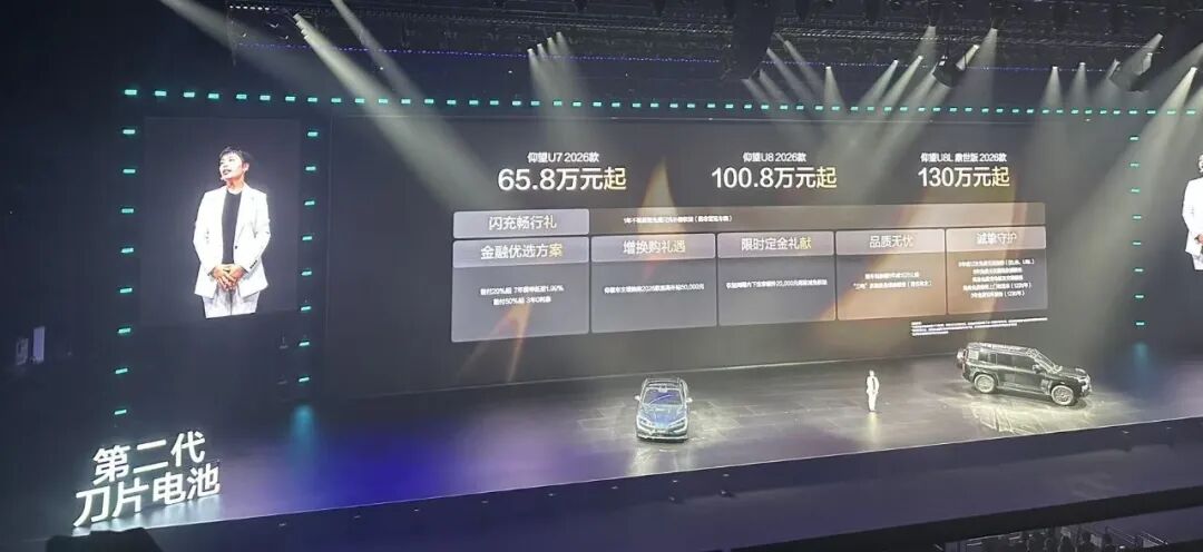 小星从比亚迪3月5号 第二代刀片电池闪充技术发布会的现场感受到的气氛比想象中浓烈许多。其中压轴好戏就是2026款仰望U7、U8、U8L鼎世版三款旗舰车型联袂上市,售价分别为65.8万元起、100.8万元起与130万元起。以三条不同的产品轴线,仰望汽车正通过闪充技术赋能极致体验是此次闪充车型发布阵容中妥妥的C位。