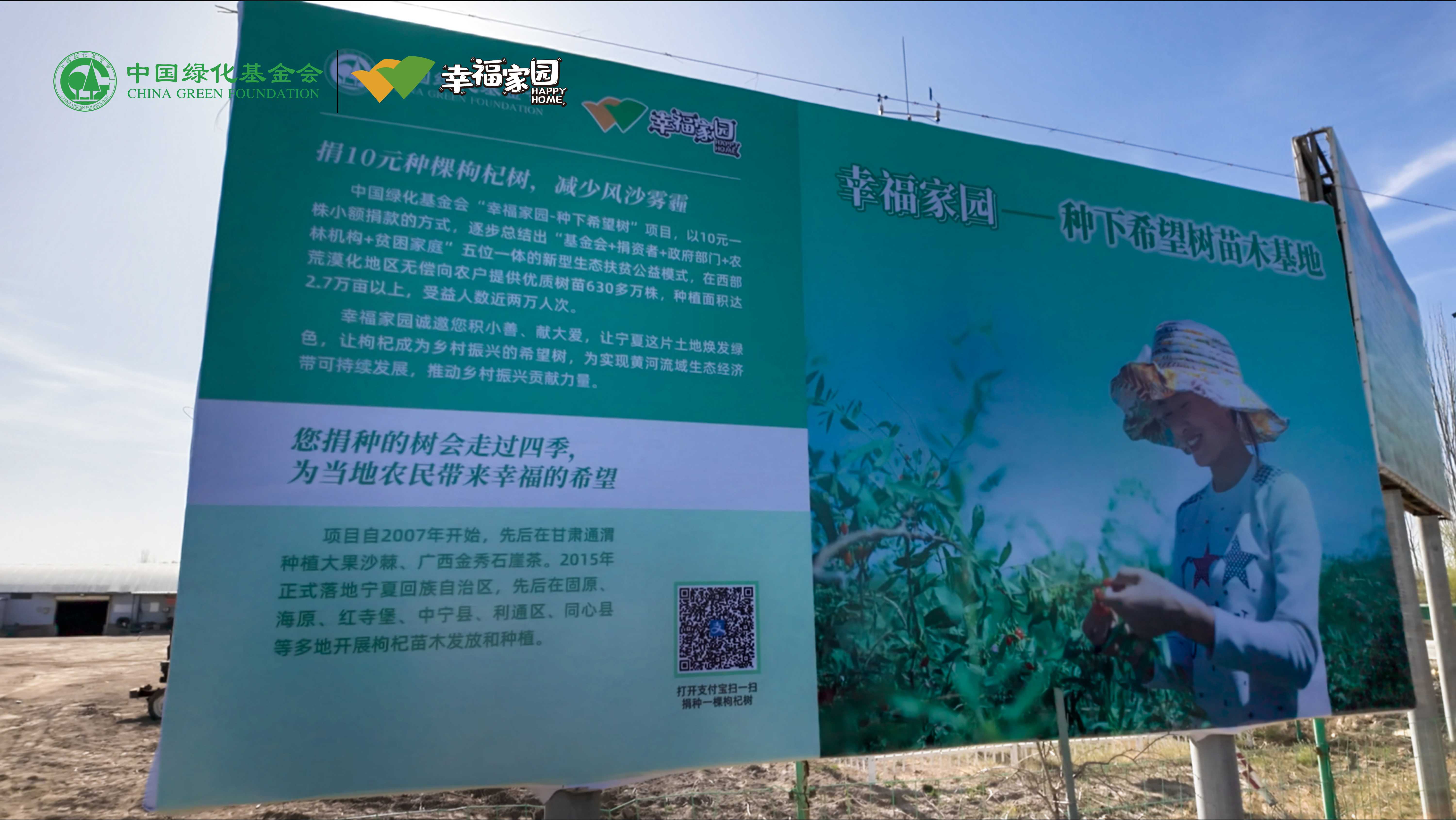 2016年至今,“幸福家园—种下希望树”项目在中卫市海原县、中宁县持续发力,为当地的荒漠化治理工作注入了新的活力。通过援助农户开展枸杞种植,项目不仅改善了当地的生态环境,为村庄筑起防风固沙绿色屏障,还带动了区域经济的发展,提高了农民的生活水平。