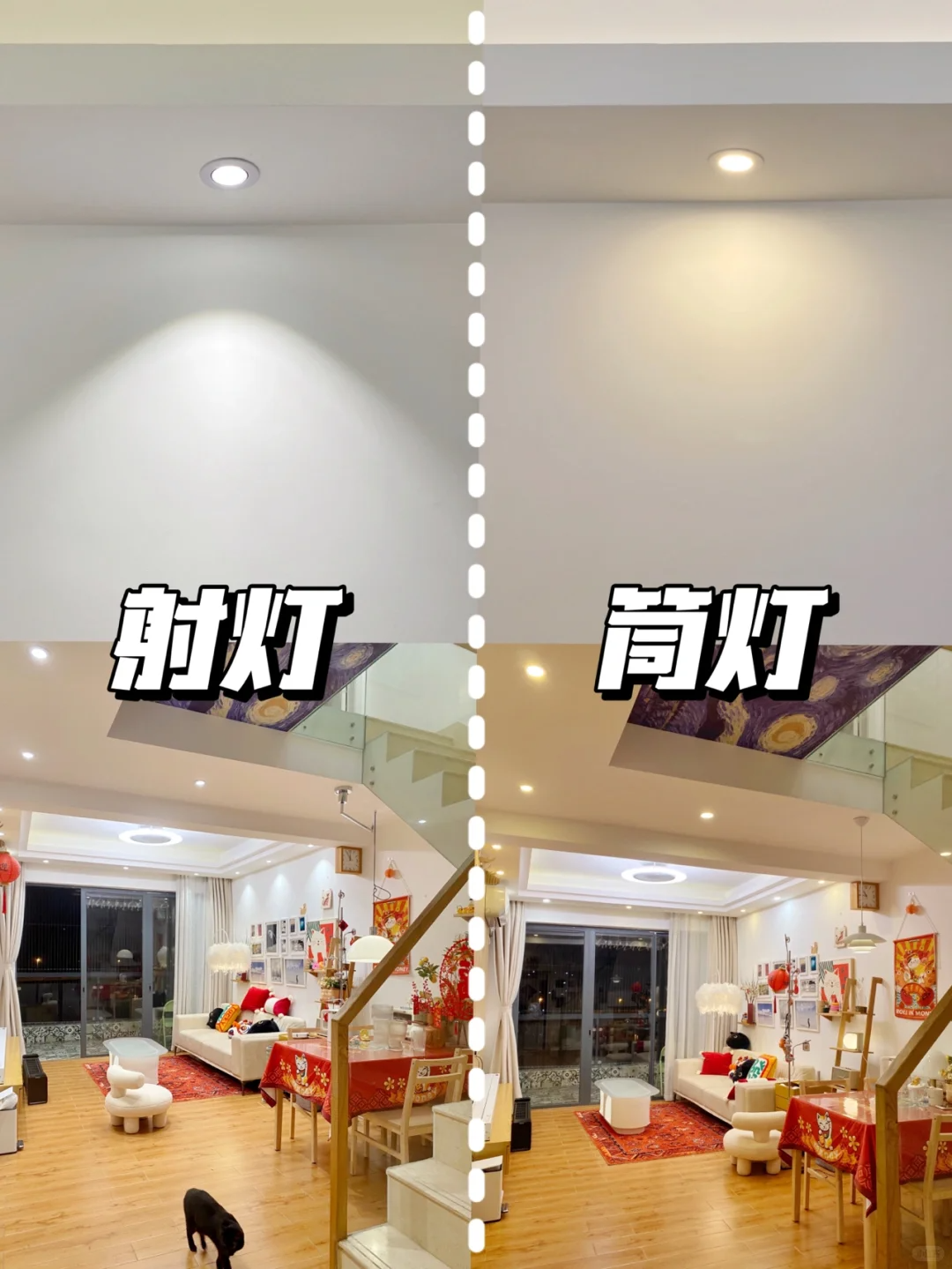 在一些特定场景下,将所有的吊灯、射灯都打开,营造氛围,方便拍照出片。