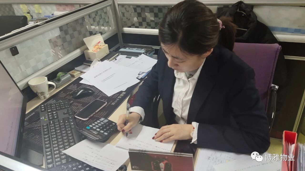 2020年5月12日,加入到博雅园物业大家庭里,主要负责前台及行政岗位工作,尽管在过去的工作中,积累了一些工作经验,但是对于从未接触过的物业行业来说,是紧张的、是不确定的。