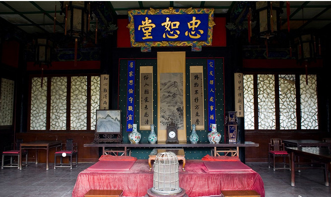 二堂介绍:也叫后厅,是衍圣公会见四品以上官僚及受皇帝委托第年替朝廷考试礼学、乐学童生的地方室内正中上、下挂着“钦承圣绪”和“诗书礼乐”的大匾,两旁立着几块石碑。二堂两头的梢间,东为启事厅,西为伴官厅。