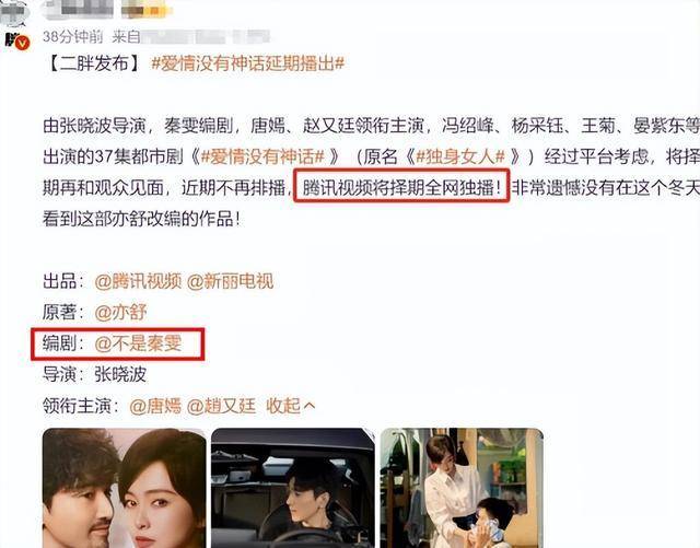 不光央视八套不播了,鹅厂也把《爱情没有神话》的播出计划下了业内有相关人士透露,腾讯公司打算在之后挑选某个时候,只在其自行搭建的平台上播放,可是直至如今,依然没有确切明晰出详尽时间节点 。
