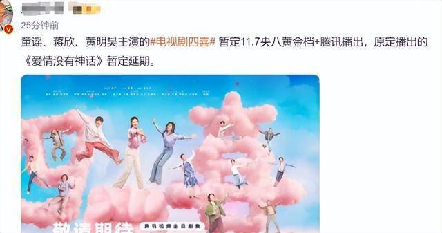 今年八月最后一天,这部剧展开开机相关行动,到了2025年2月中旬,它完成拍摄事项,原计划2025年11月7日在央视八套黄金时段播放,然而实际情况是距离预定播放时间只剩四天了 。突然说不播了,换成童瑶、蒋欣演的《四喜》。