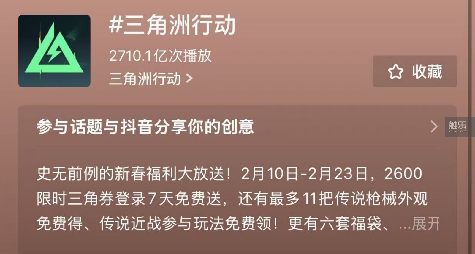 抖音中的“三角洲行动”话题获得2710亿次以上的播放