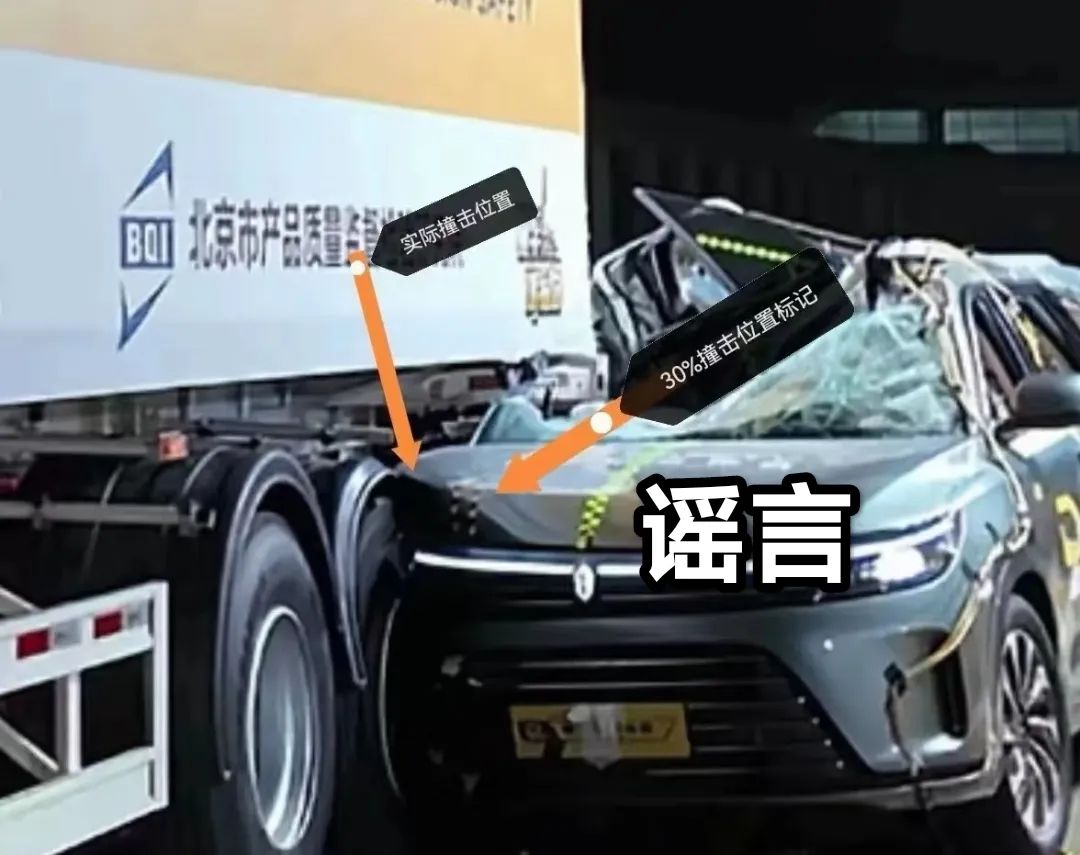有点逻辑的人就会说这个钻撞卡车测试本身存在猫腻,比如造谣这么洗:把碰撞后的图当成碰撞前的图传播,说懂车帝撞的位置偏了。