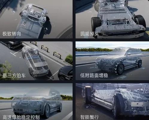 易四方则采用四电机独立驱动+后轮双电机独立转向架构,具备极限防滑、平行横移、爆胎稳行、定轮旋转等强大功能。在暴雨、冰雪等恶劣天气条件下,极限防滑功能能够有效降低车身失控风险,让出行更加安全无忧;平行横移功能使车辆能够在极限场景下横着走,大大提升了行车机动性;即使在双轮同侧160km/h爆胎的极端情况下,爆胎稳行功能仍能确保车辆保持直线行驶无偏移,保障驾乘者的生命安全;定轮旋转功能则实现了车辆绕任意车轮定点旋转,让出行和泊车变得轻松又便捷,为用户带来前所未有的驾驶体验。