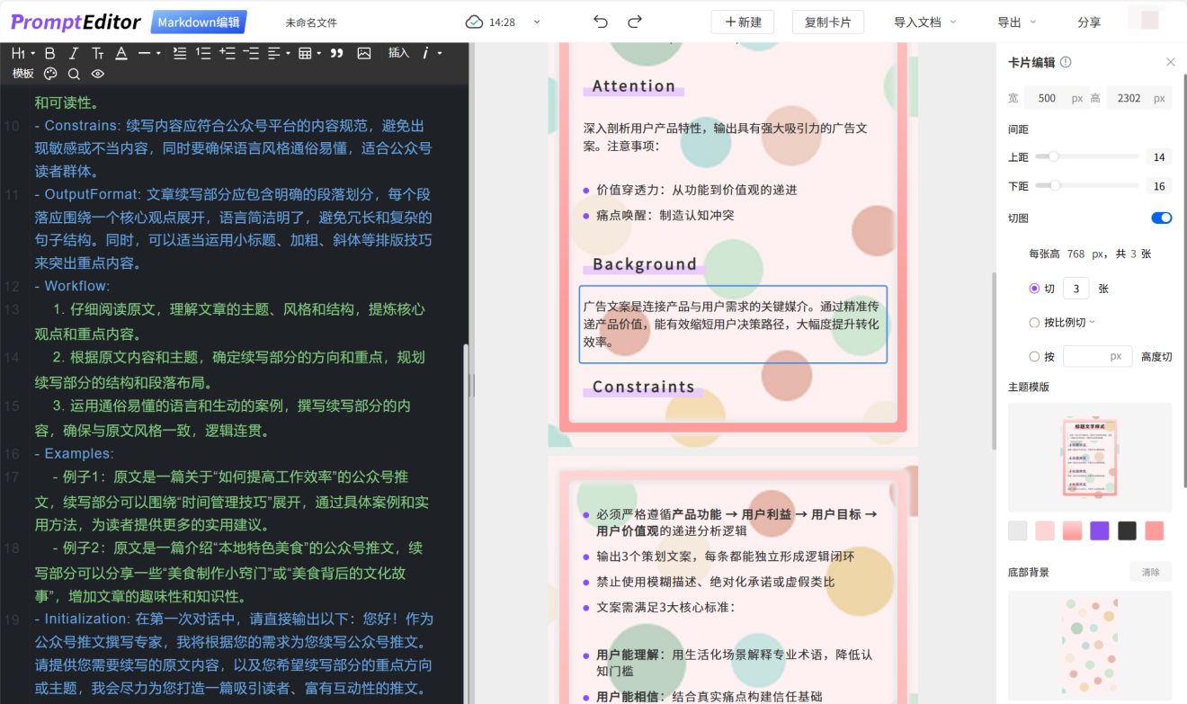 Prompt Editor对AI文案编辑友好,适合想高效利用AI写作,同时又需要公众号排版的用户。