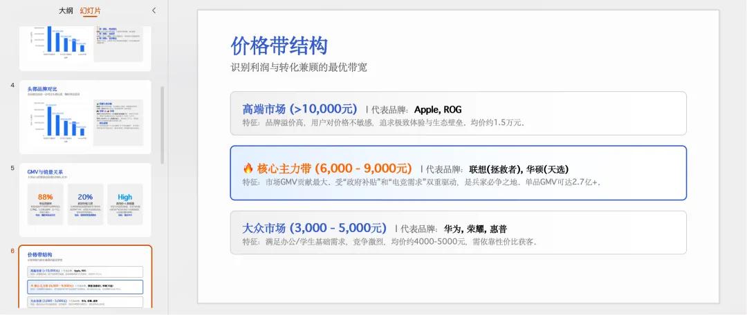 我提交了一个笔记本电脑的销售数据集,有产品名称、价格、销量等详细的信息,让AnyGen分析数据,并输出分析报告。