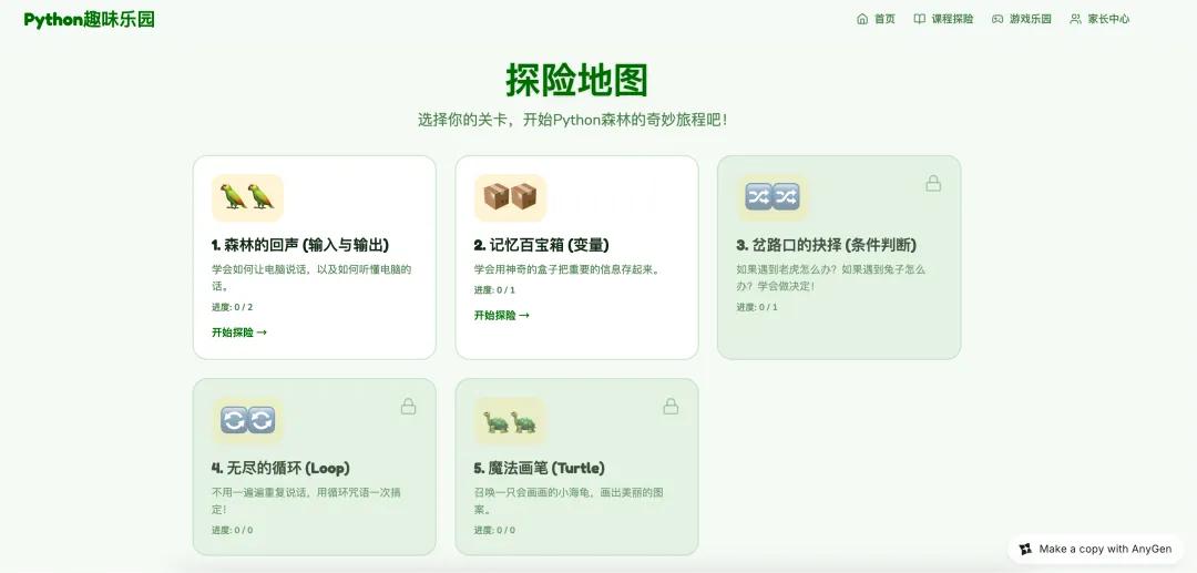 比如创建一个适合小朋友学习的Python编程网站。