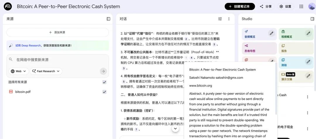 还有一点,AnyGen和NotebookLM的核心差异在于,NotebookLM主要基于你上传的文件创建知识库,并严格在此知识库范围上输出内容,主打的是减少AI幻觉,保证内容的可追溯。