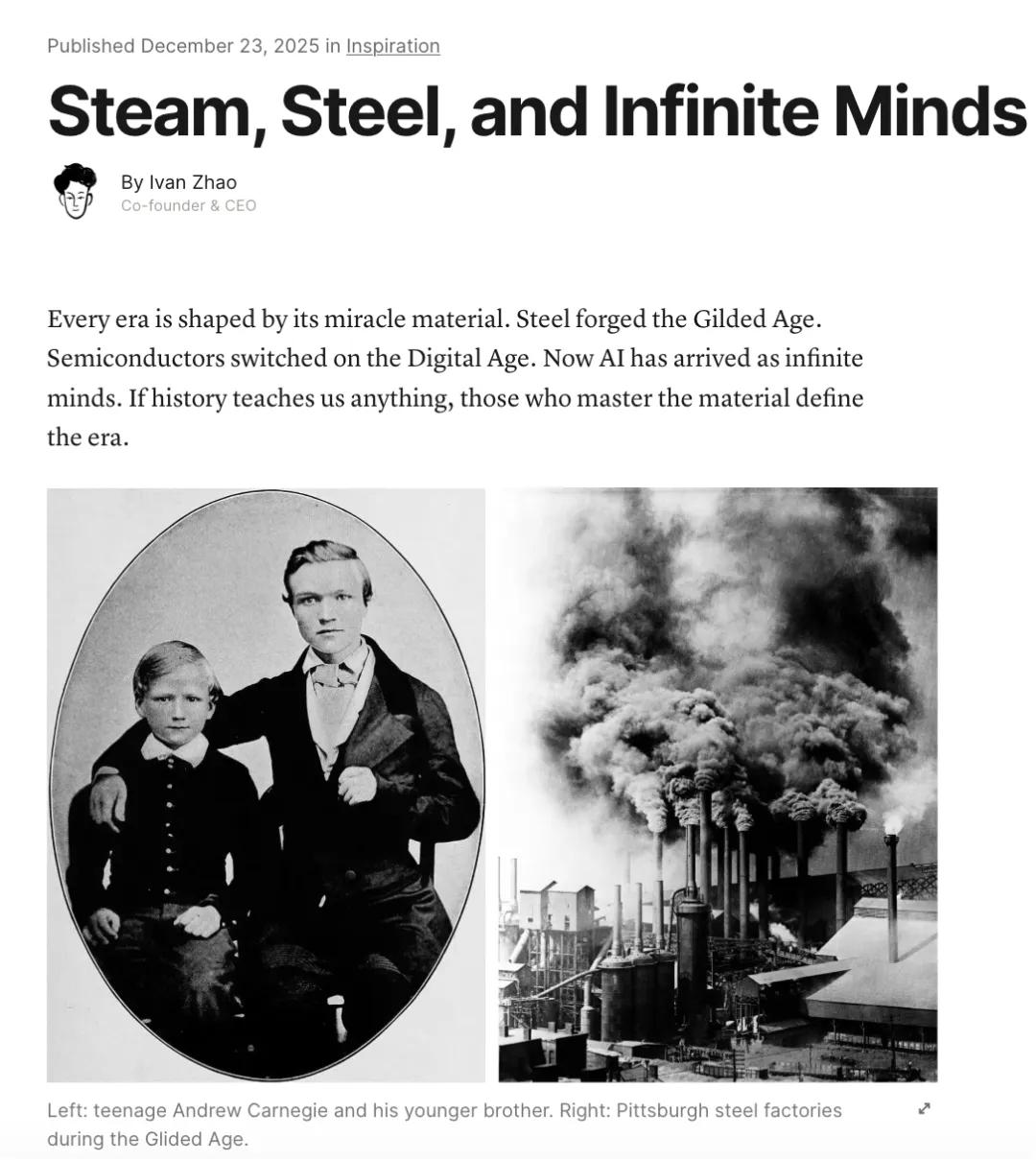这让我想起了notion创始人Ivan Zhao最近写的一篇文章《蒸汽、钢铁与无限智识》,其中提到“从骑自行车到开汽车”的类比。
