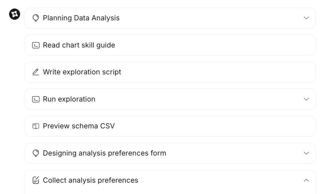 AnyGen会将任务进行拆解,包括数据梳理、脚本编写、可视化设计等,每个步骤应该对应着某个skill。